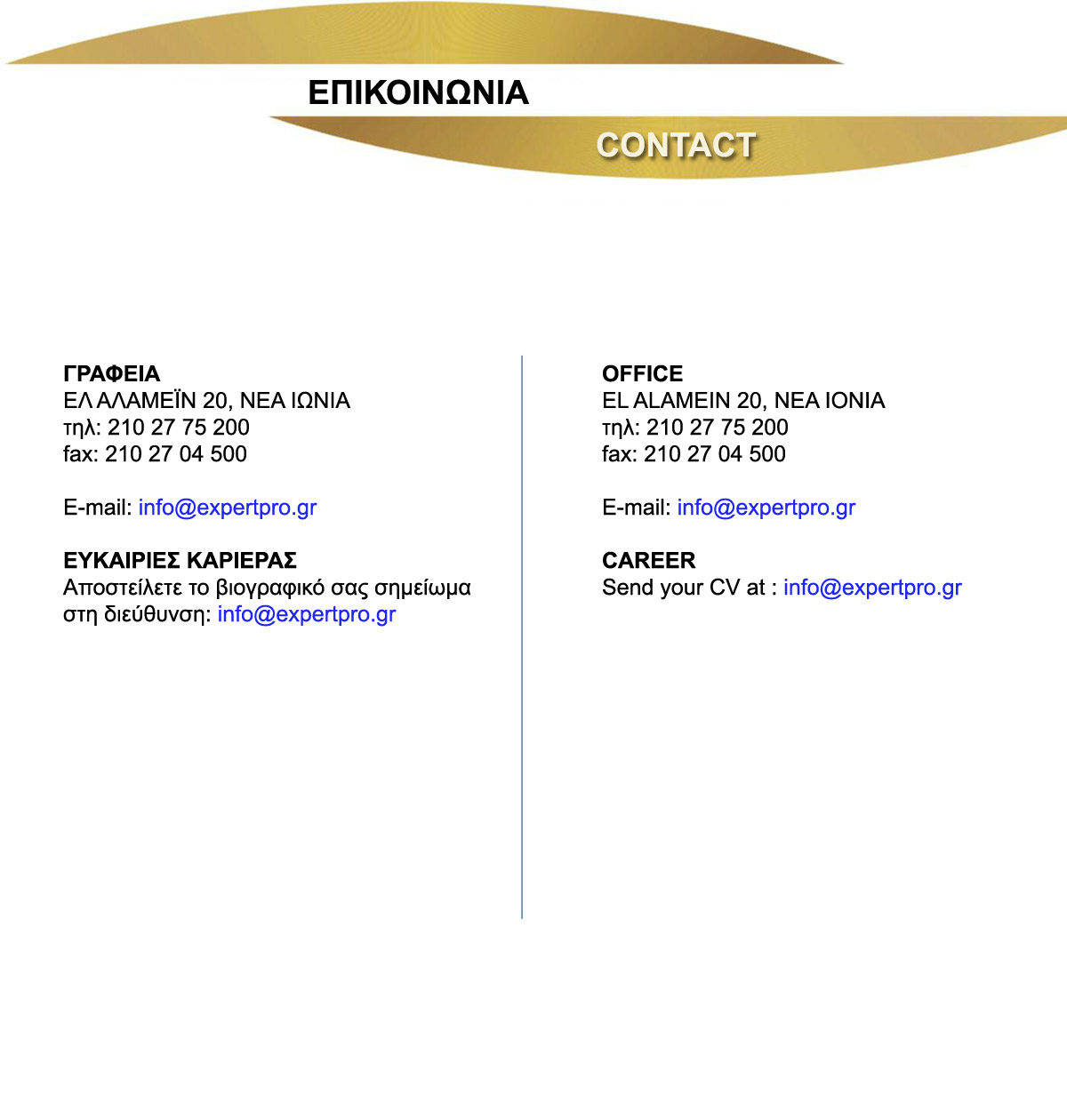 ΕΥΚΑΙΡΙΕΣ ΚΑΡΙΕΡΑΣ Αποστείλετε το βιογραφικό σας σημείωμα στη διεύθυνση: info@expertpro.gr